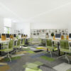 • Ortak Alanlar: Masaların etrafına ortak kullanım alanları ekleyin. Bu, sohbet ve bilgi alışverişi için resmi olmayan alanlar yaratır.