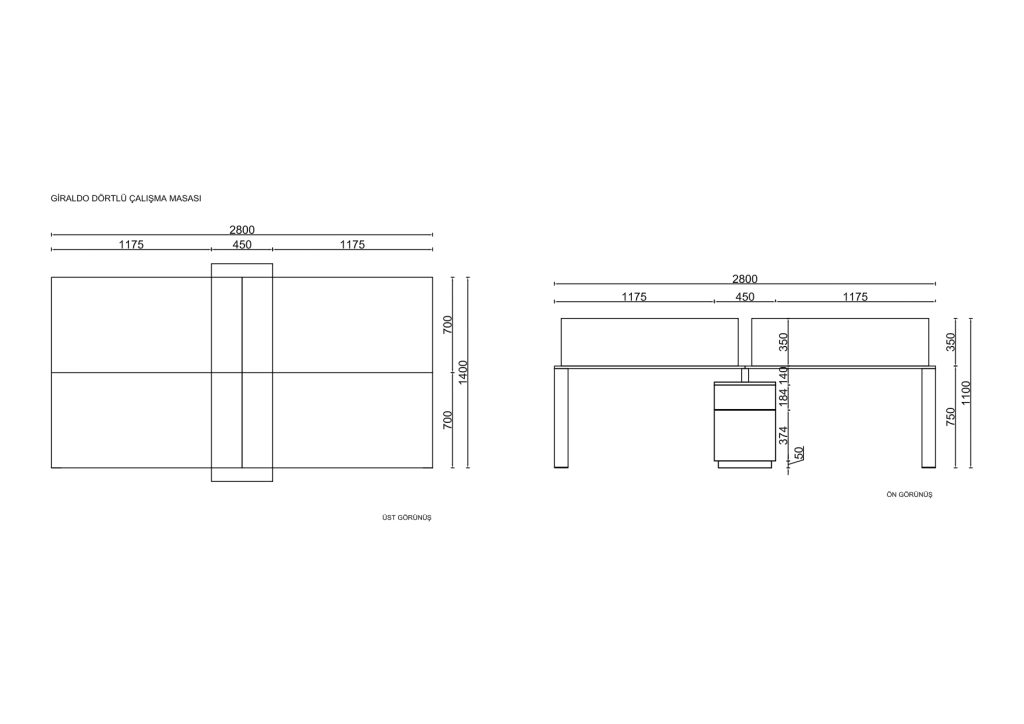 | ÜRÜN OPSİYONU | Dörtlü Çalışma Masası |