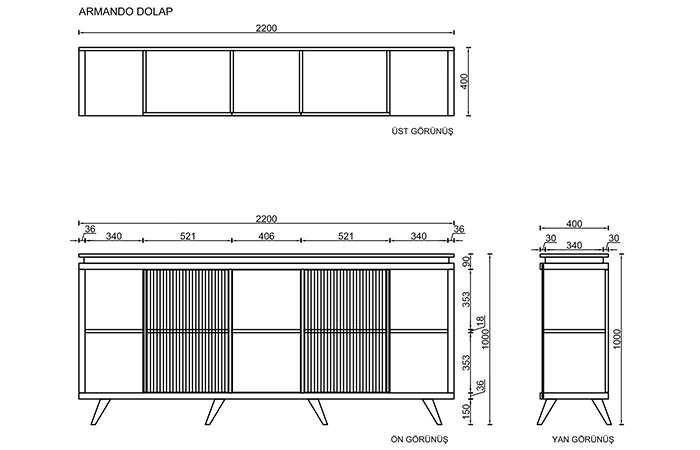 | Boyutlar | 220 × 40 × 100 cm |