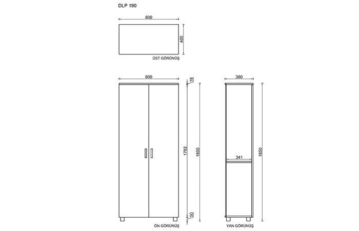 | Boyutlar | 80 × 40 × 190 cm |