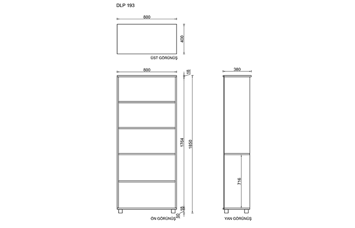 Boyutlar 80 × 40 × 190 cm