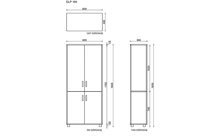 | Boyutlar | 80 × 40 × 190 cm |