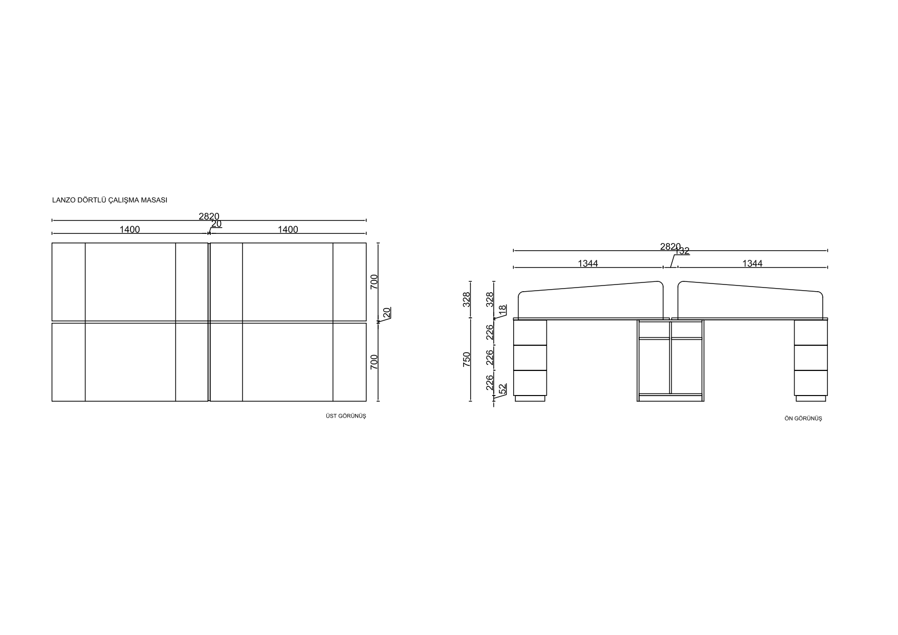 | ÜRÜN OPSİYONU | Dörtlü Çalışma Masası |