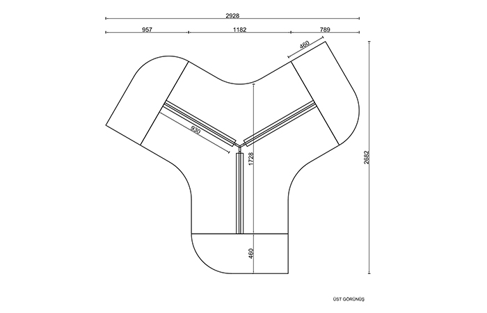 Pietro Üçlü Çalışma Masası: Boy:295 cm En: 270 cm Yükseklik:75 cm