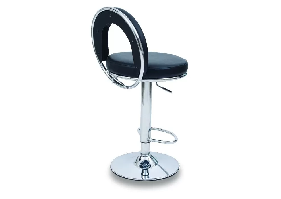 Siyah deri ve krom detaylarıyla şıklığı ofisinize taşıyan bar taburesi, konfor ve stilin mükemmel birleşimi!