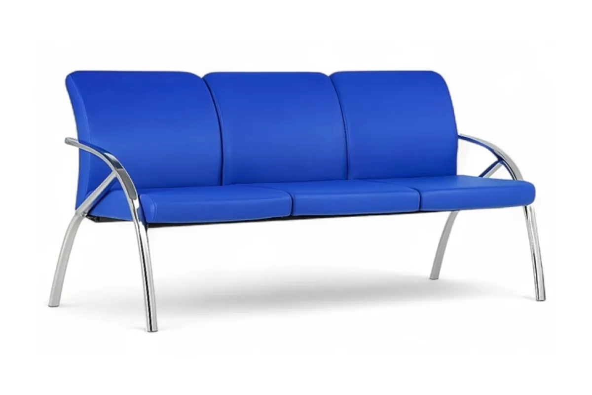Canlı mavi renk ve şık krom detaylarla ofisinize modern bir dokunuş katın; Regal Üçlü Bekleme Koltuğu ile konforu yaşayın!