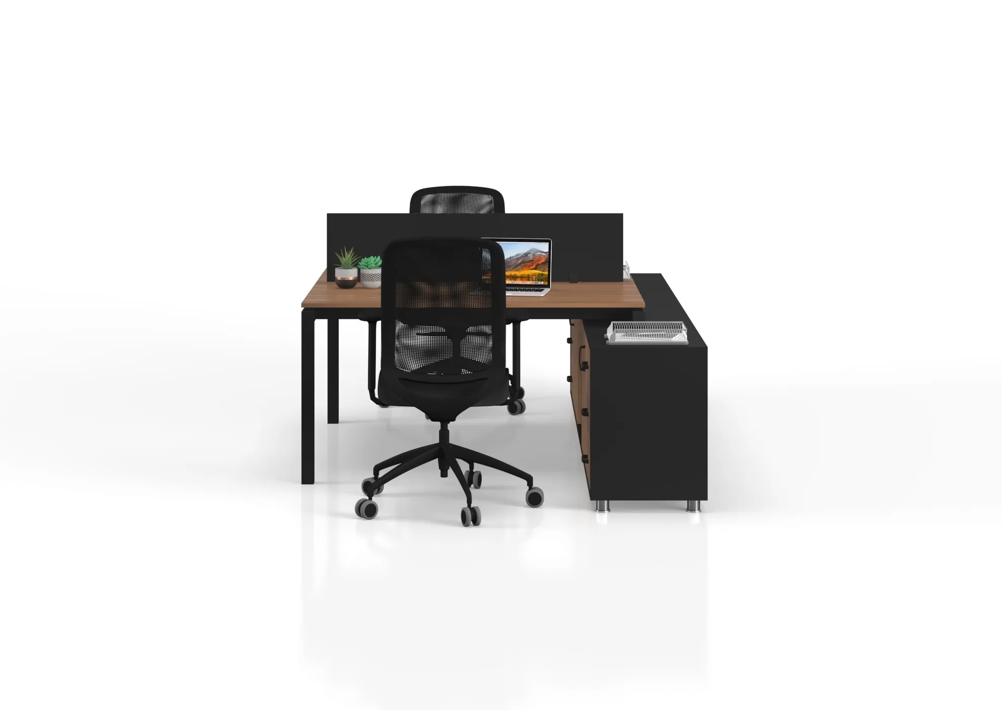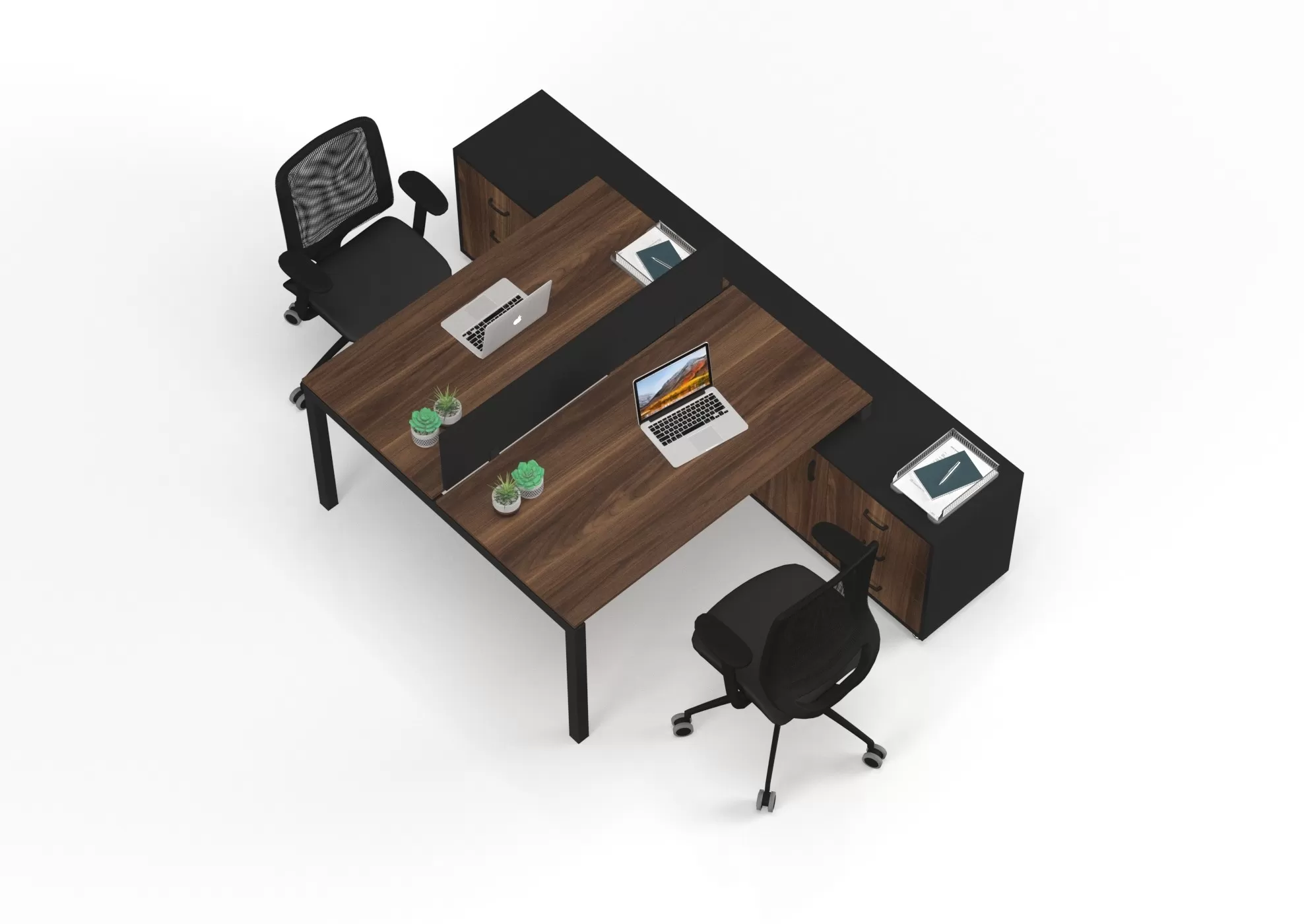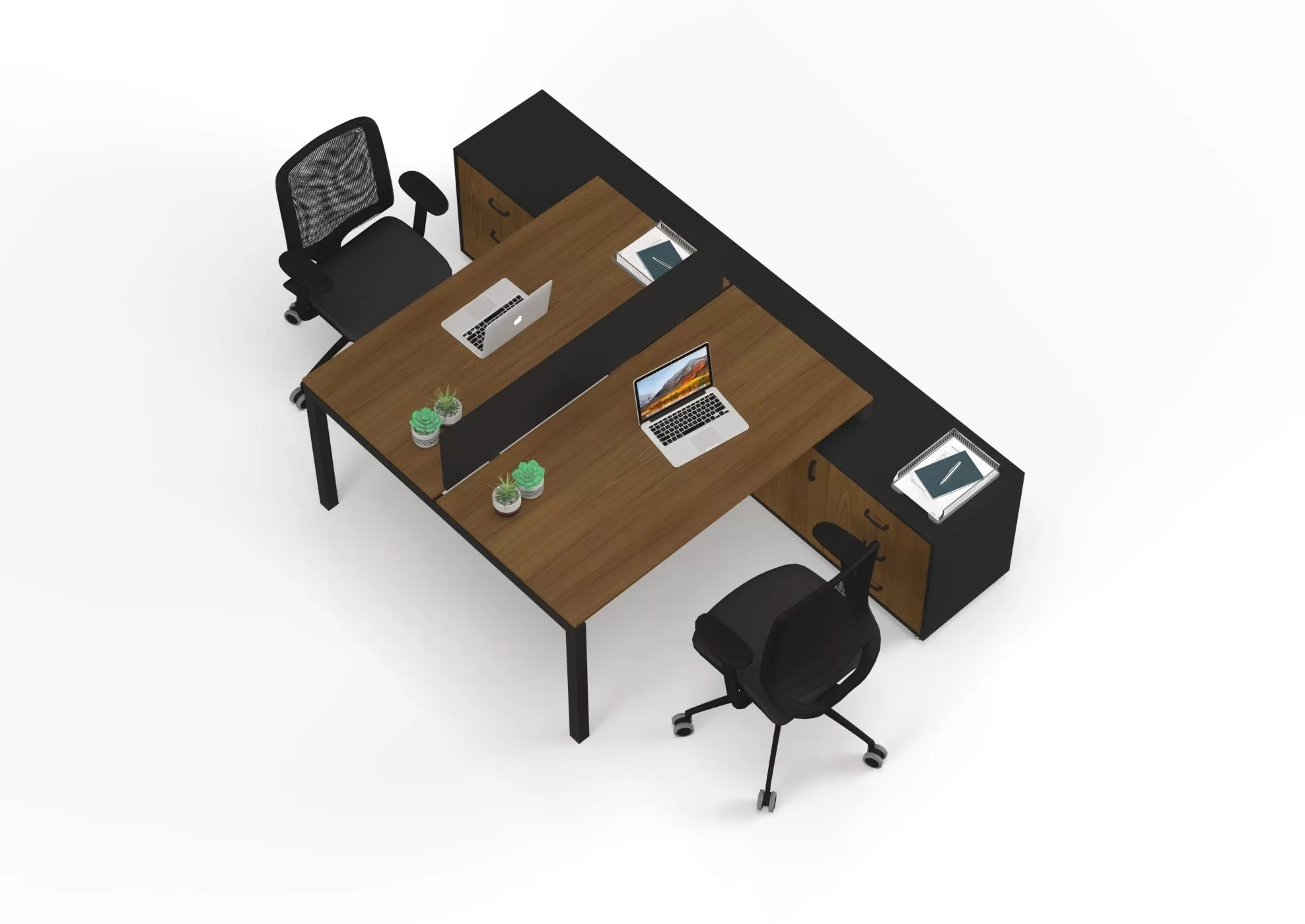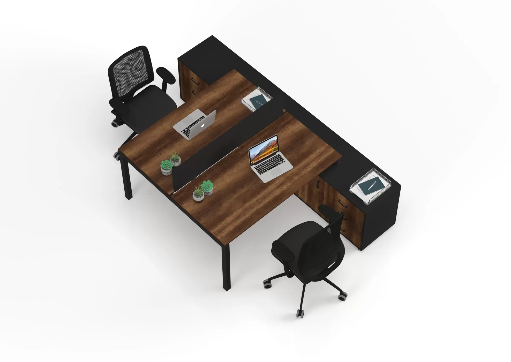 Ahşap ve siyahın şıklığıyla ofisinizde modern bir dokunuş; Delta Etajerli İkili Çalışma Masası ile fark yaratın!
