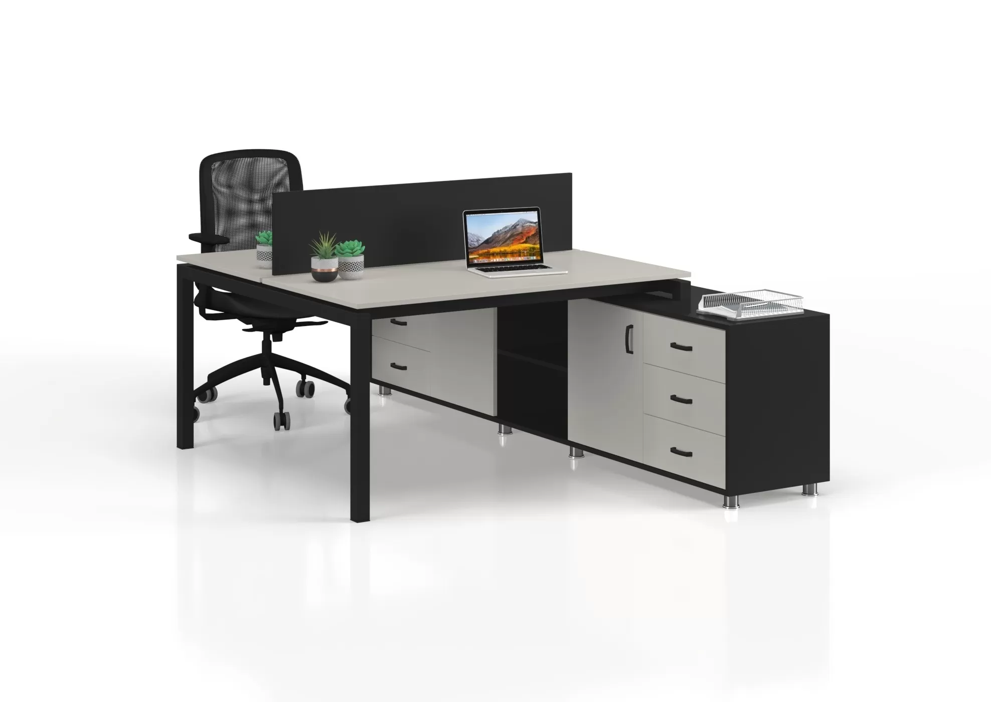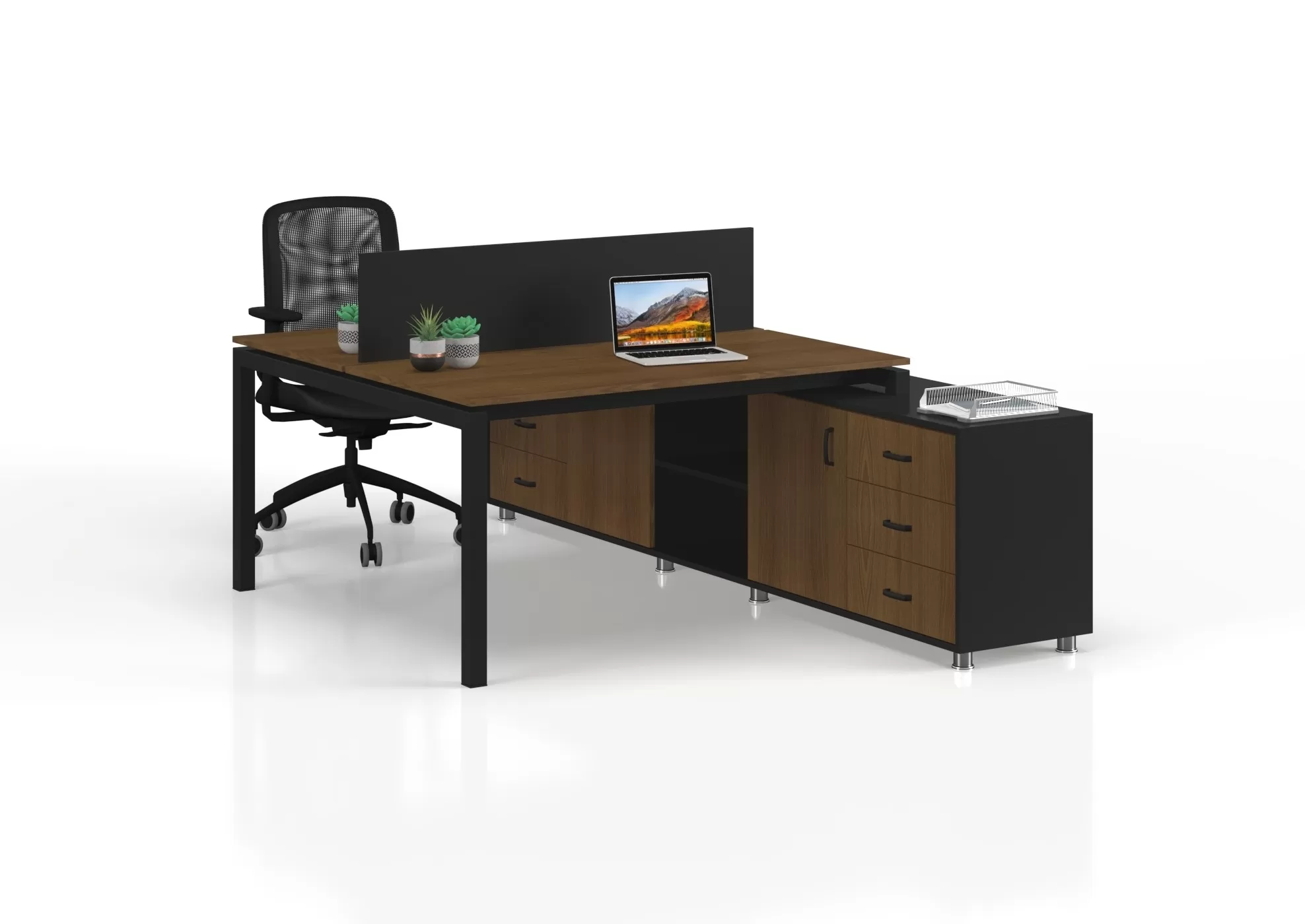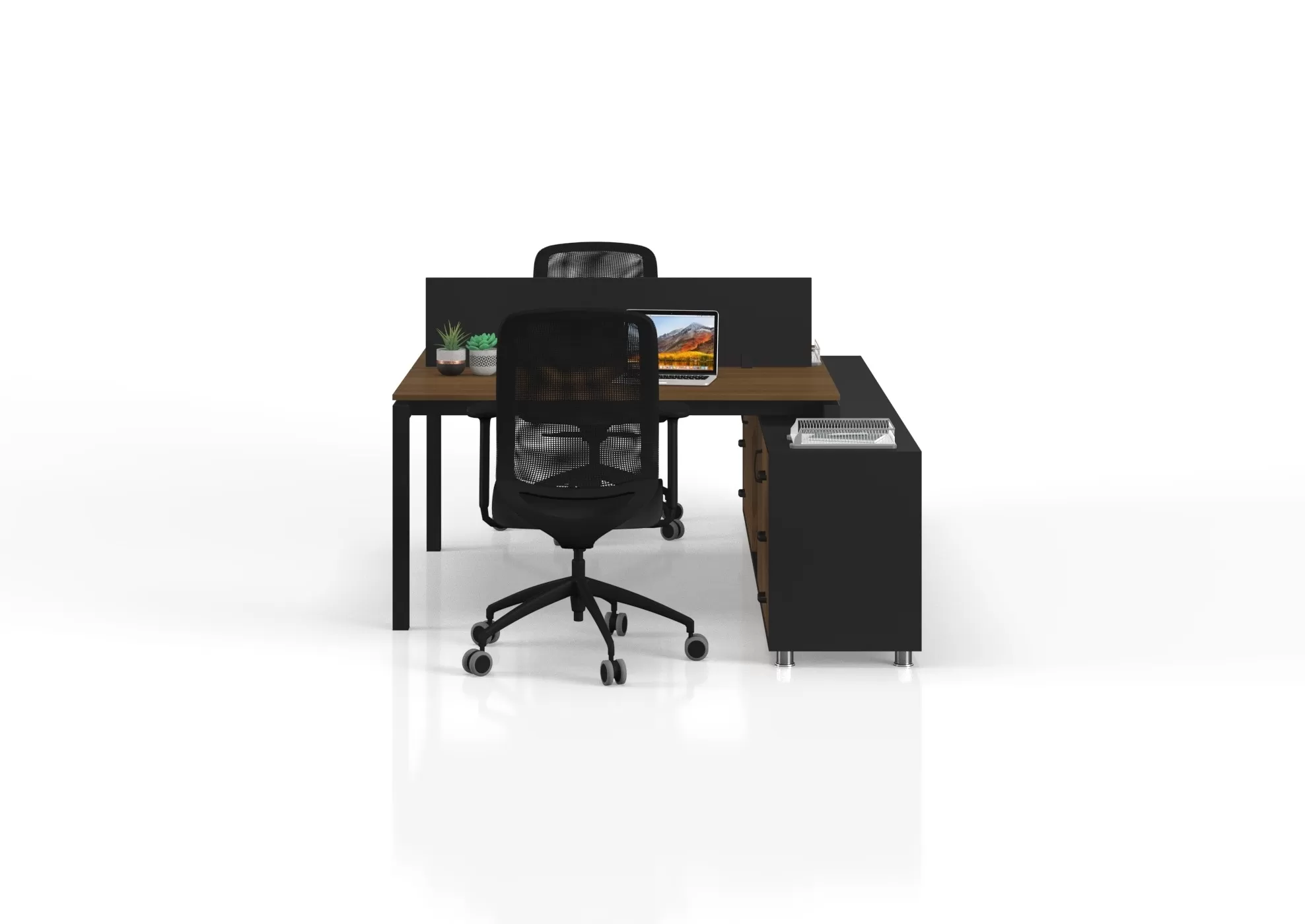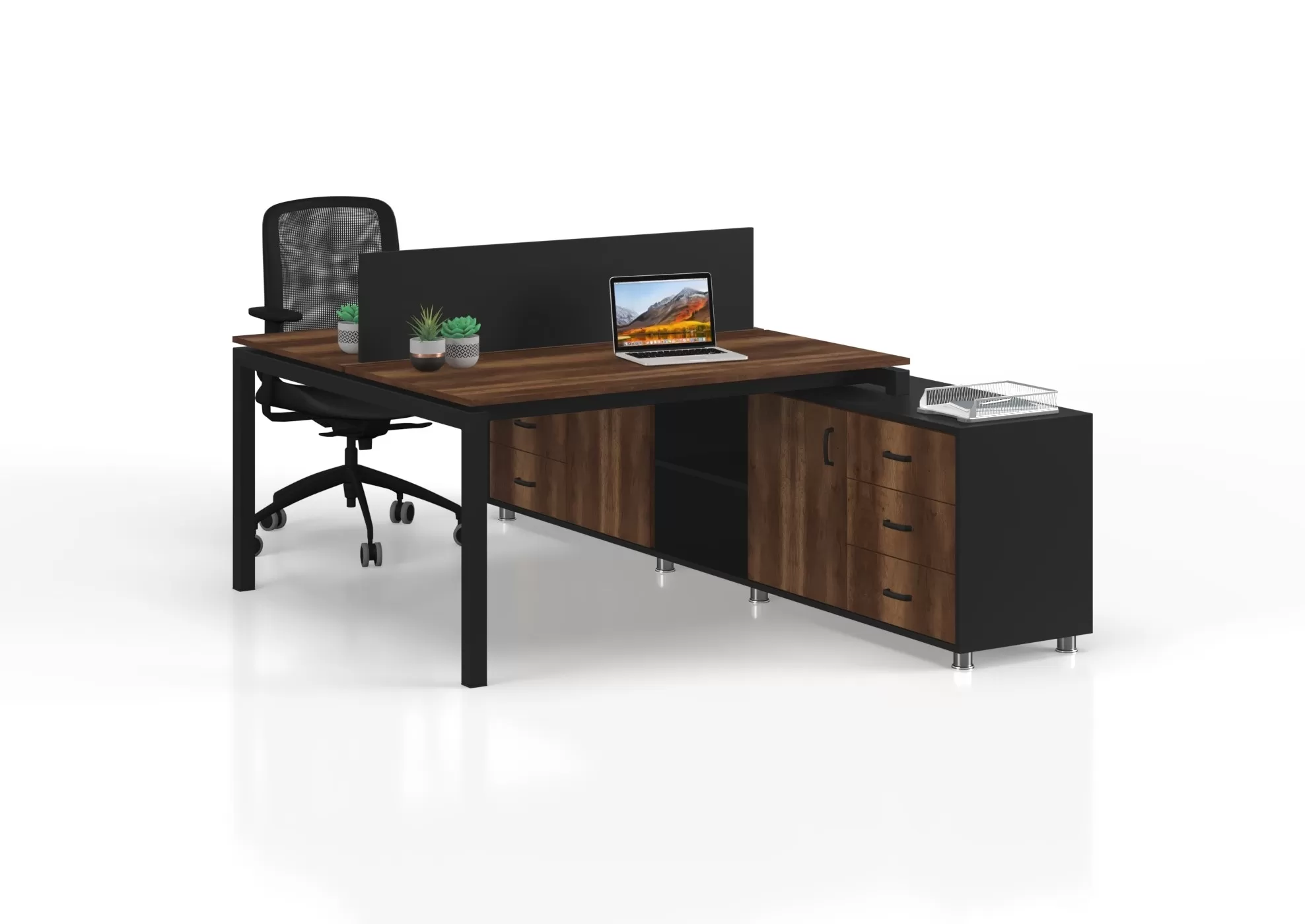 Ahşap ve siyahın şıklığıyla ofisinizde modern bir dokunuş; Delta Etajerli İkili Çalışma Masası ile fark yaratın!
