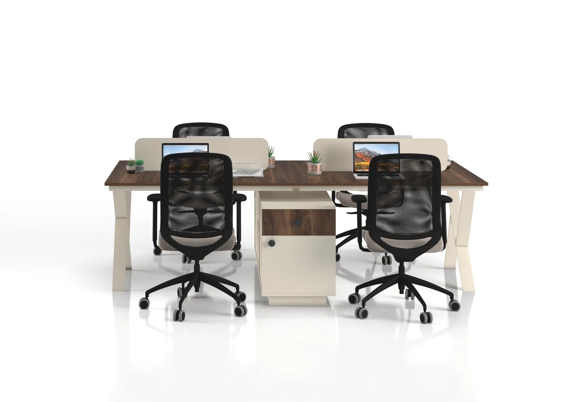 Modern ve şık tasarımıyla Giraldo Dörtlü Çalışma Masası, ofisinizde verimliliği artırın!