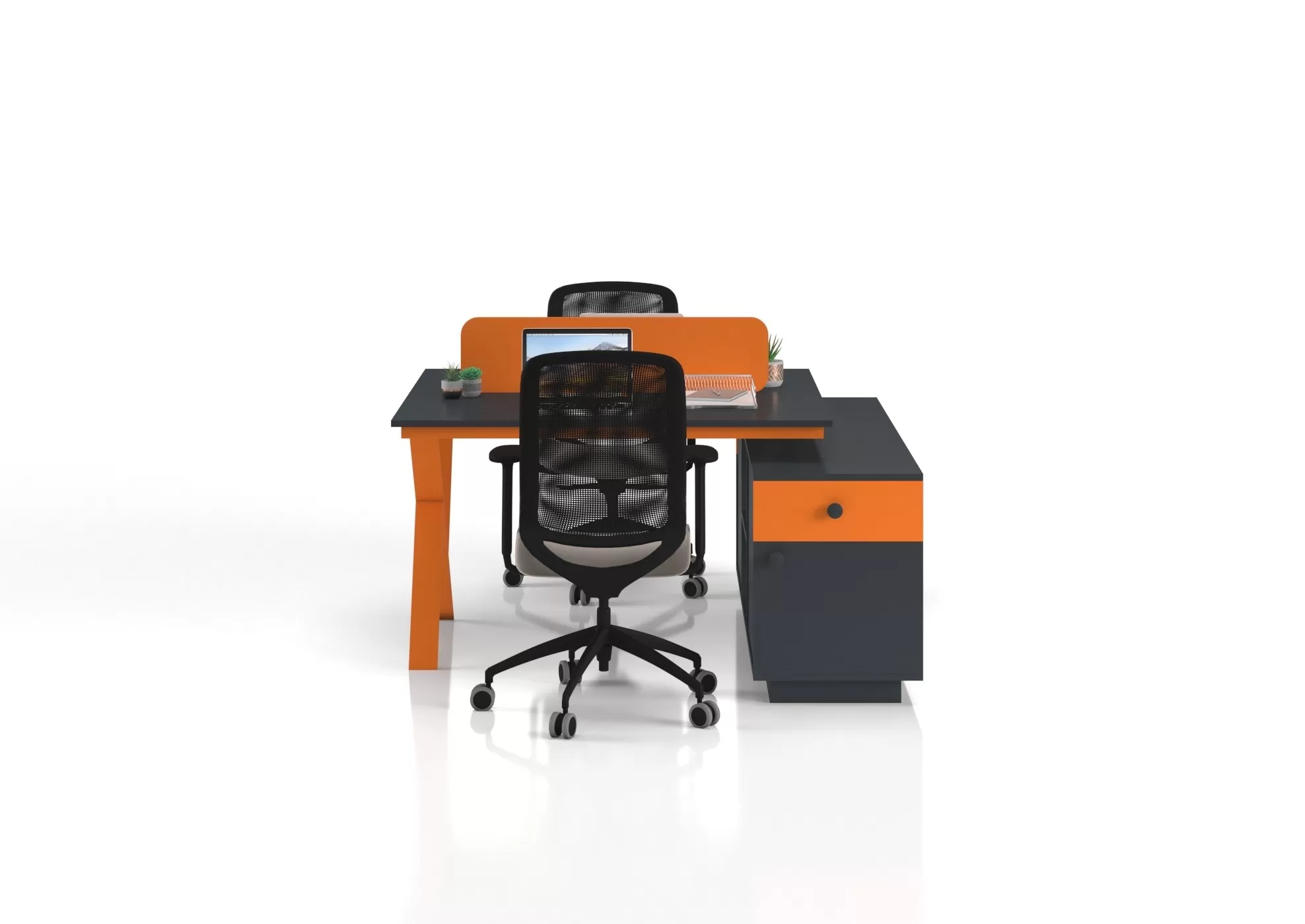 Canlı turuncu detaylarla modern tasarım; Giraldo İkili Çalışma Masası, ofisinizde enerji dolu bir atmosfer yaratır!