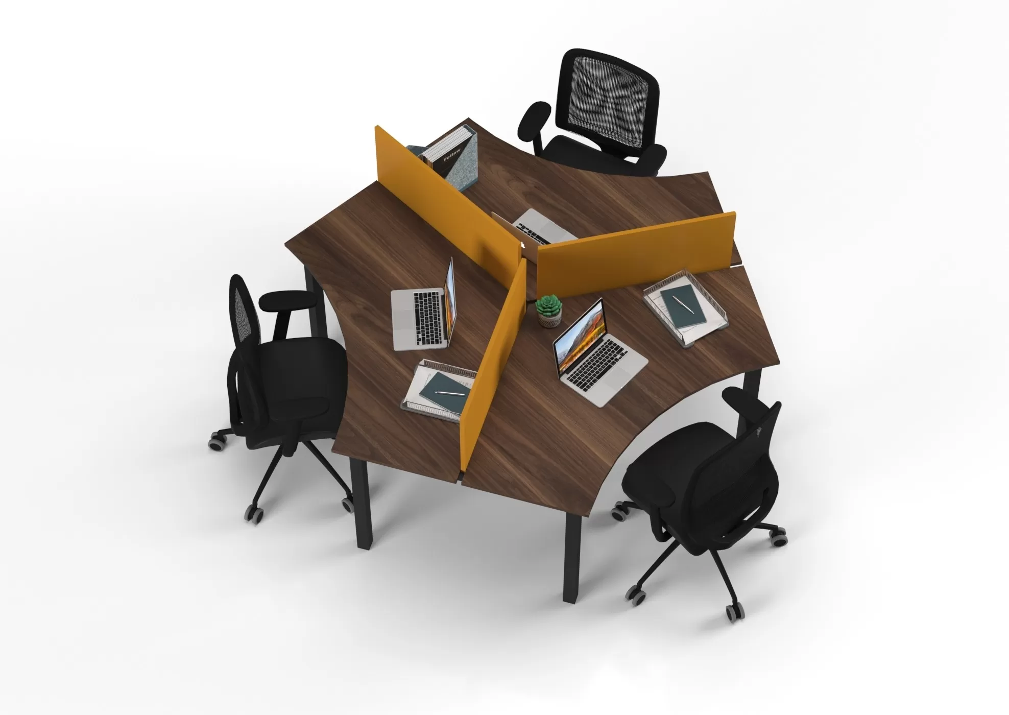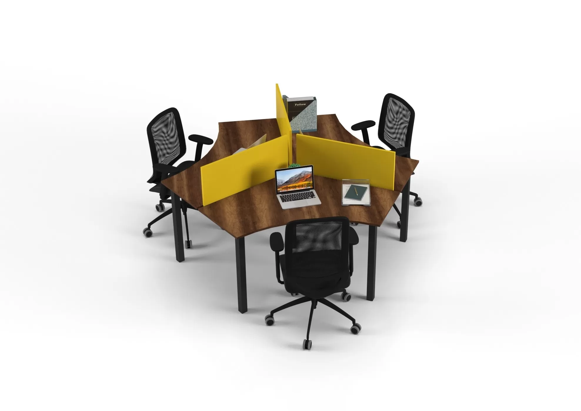 Şık ceviz rengi ve enerji dolu sarı panellerle ofisinize estetik ve verimlilik katın!