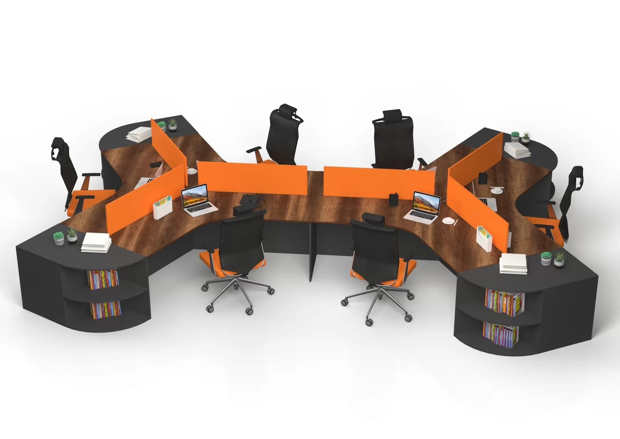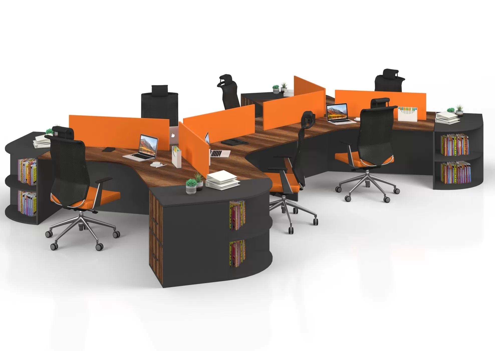 Modern ofislerin kalbi: Şık tasarımı, enerjik turuncu detaylarıyla Pietro Altılı Çalışma Masası. Verimliliği katlayın!