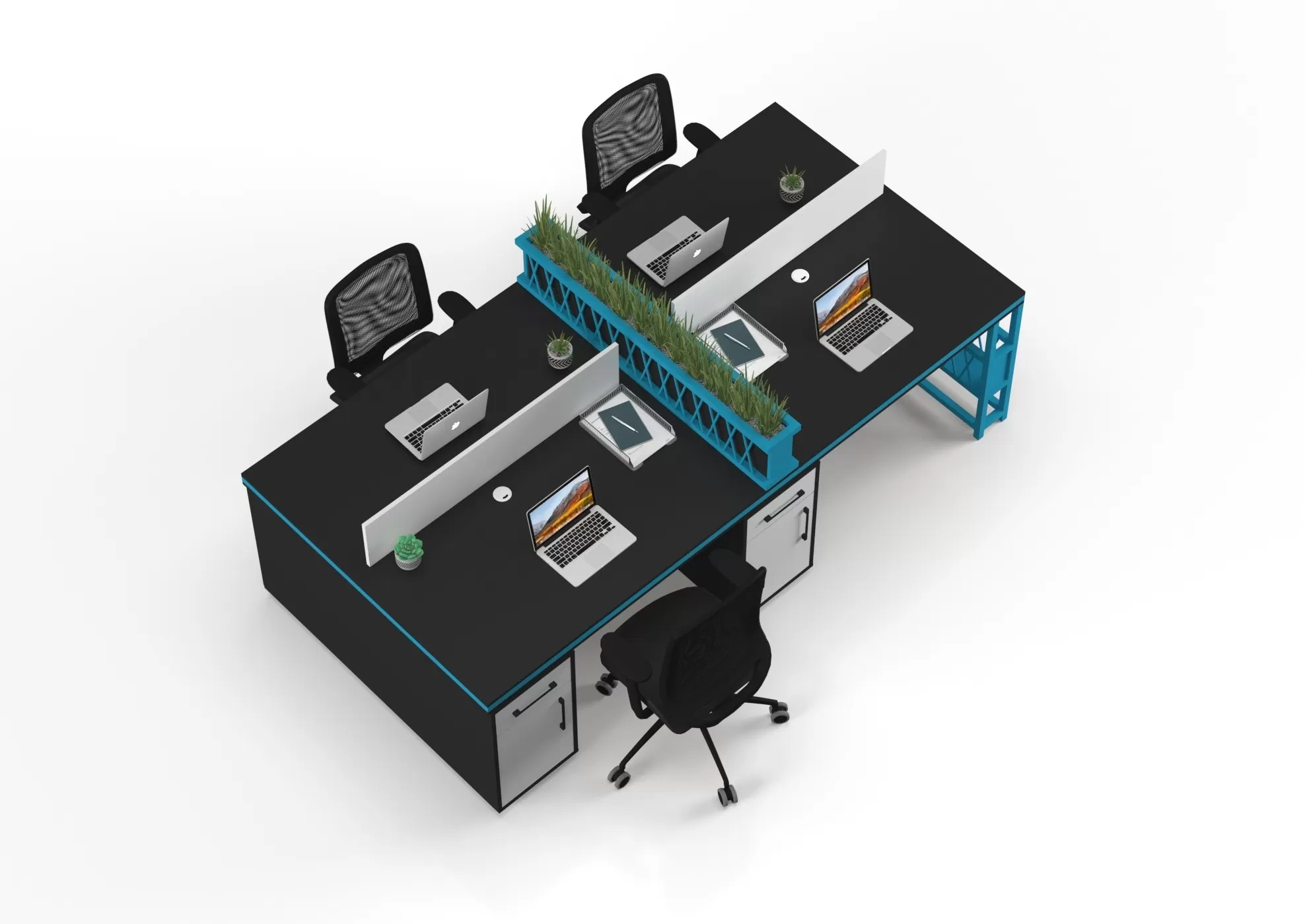 Modern ve işlevsel tasarımıyla ofislerinize canlılık katın; Rocco dörtlü çalışma masası ile daha verimli çalışın!