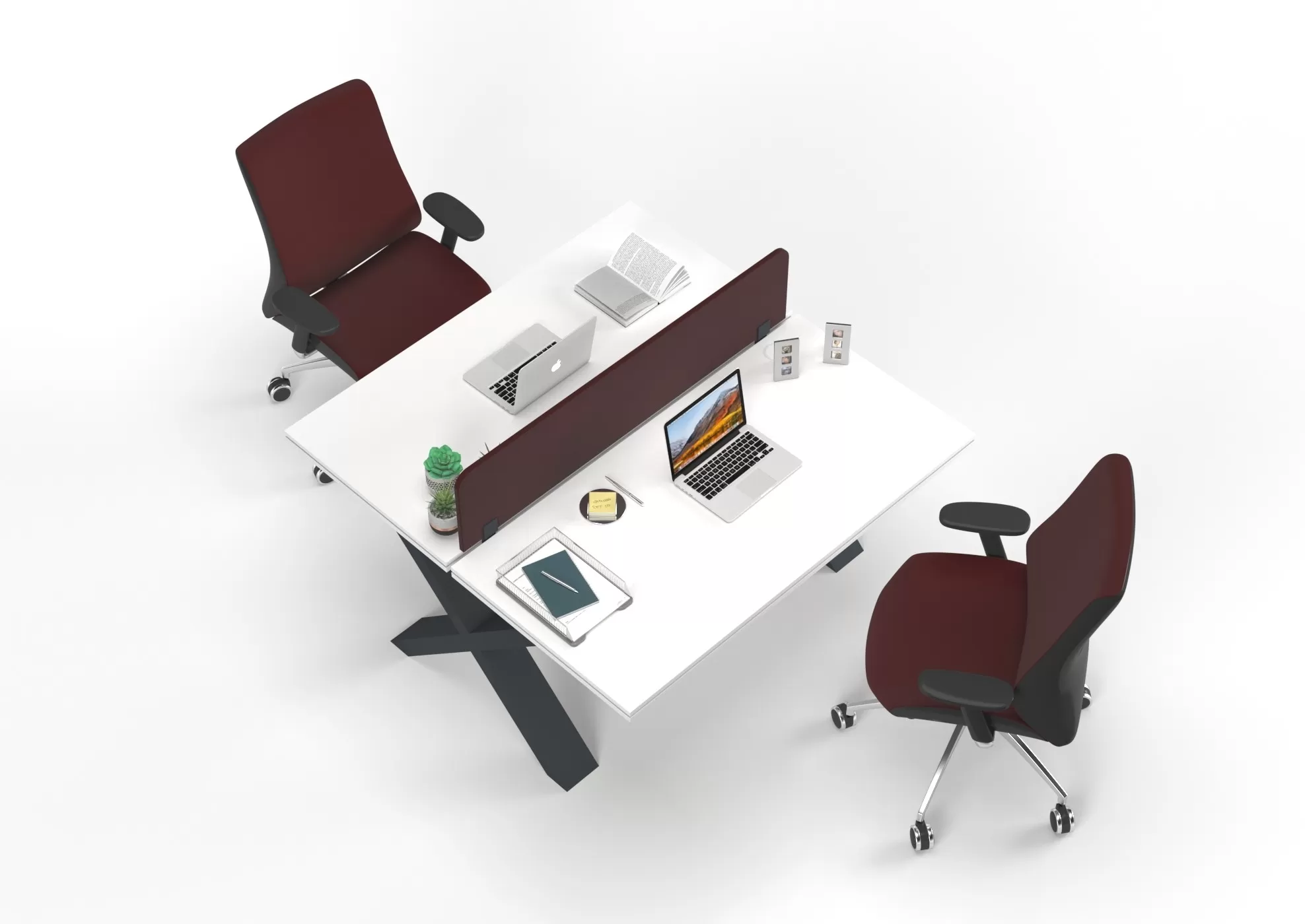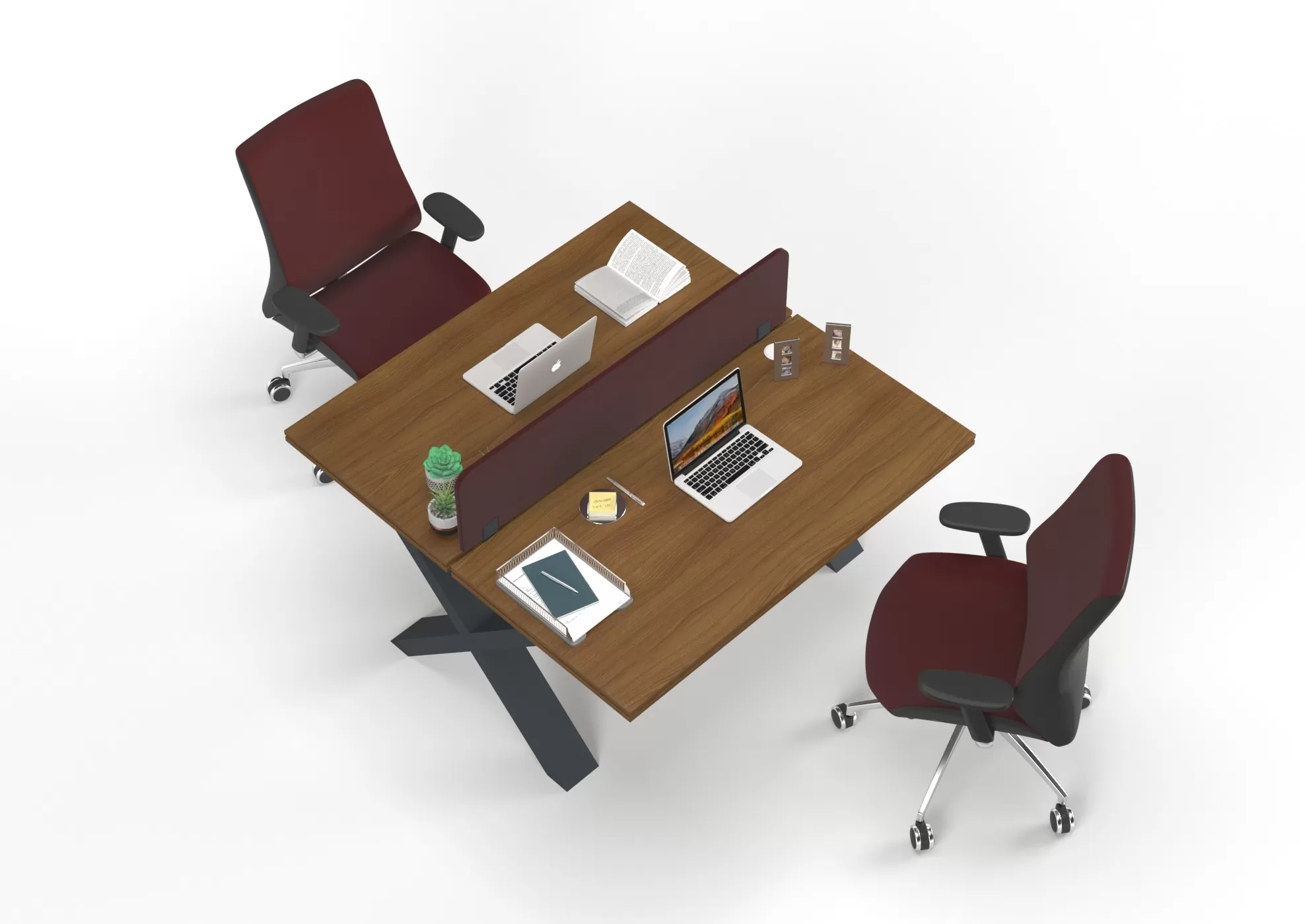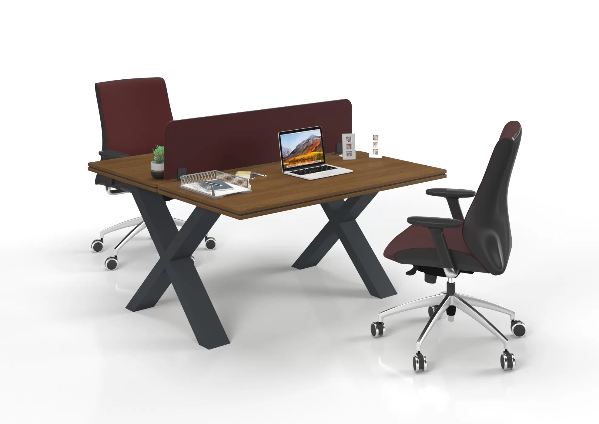 Modern X ayak tasarımı ve zarif bordo dokunuşuyla Tosca İkili Çalışma Masası, ofisinizi yenileyin!