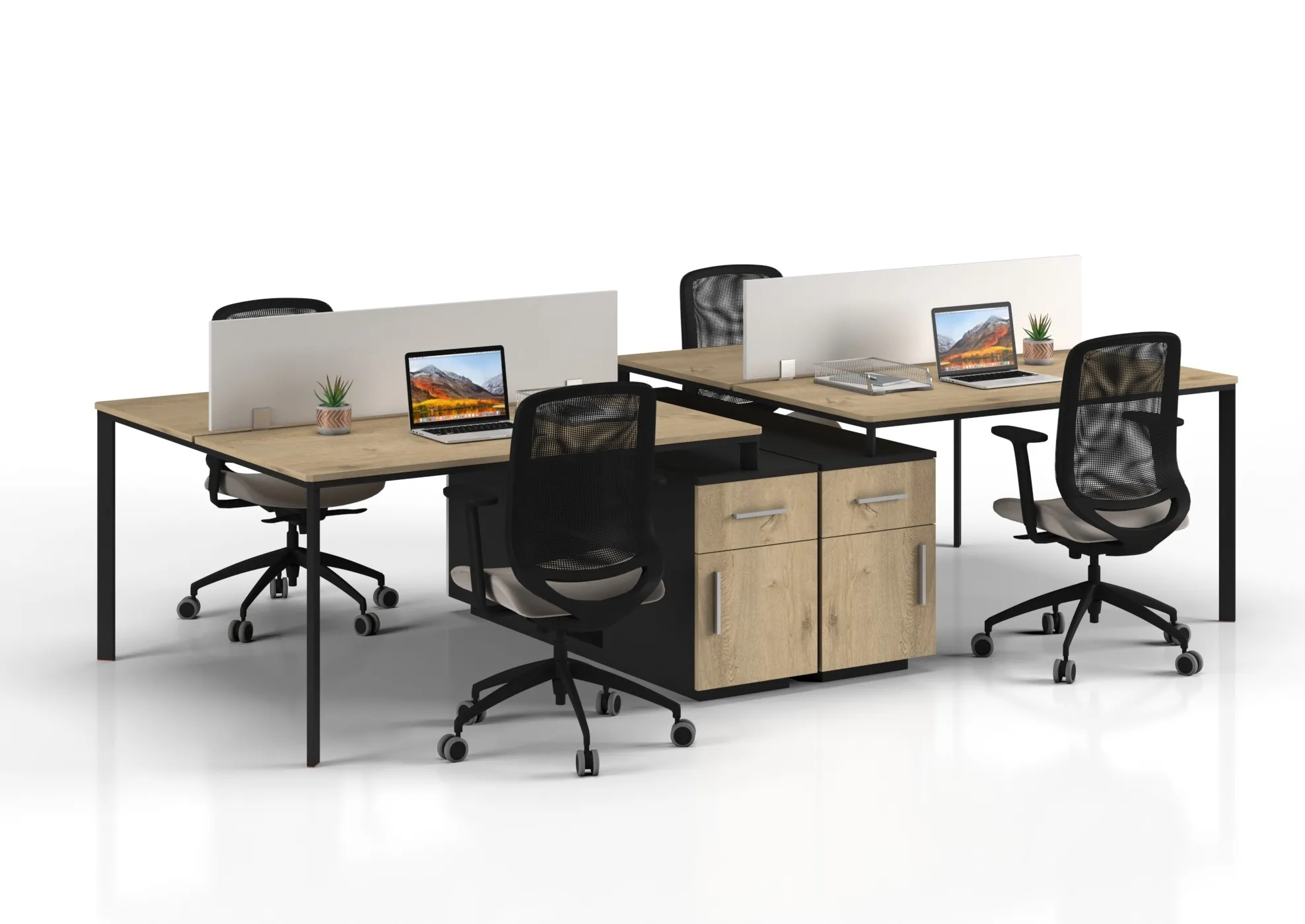 Ahşap sıcaklığı ve modern tasarımın buluştuğu Vitale Dörtlü Çalışma Masası, ofisinize şıklık katacak!