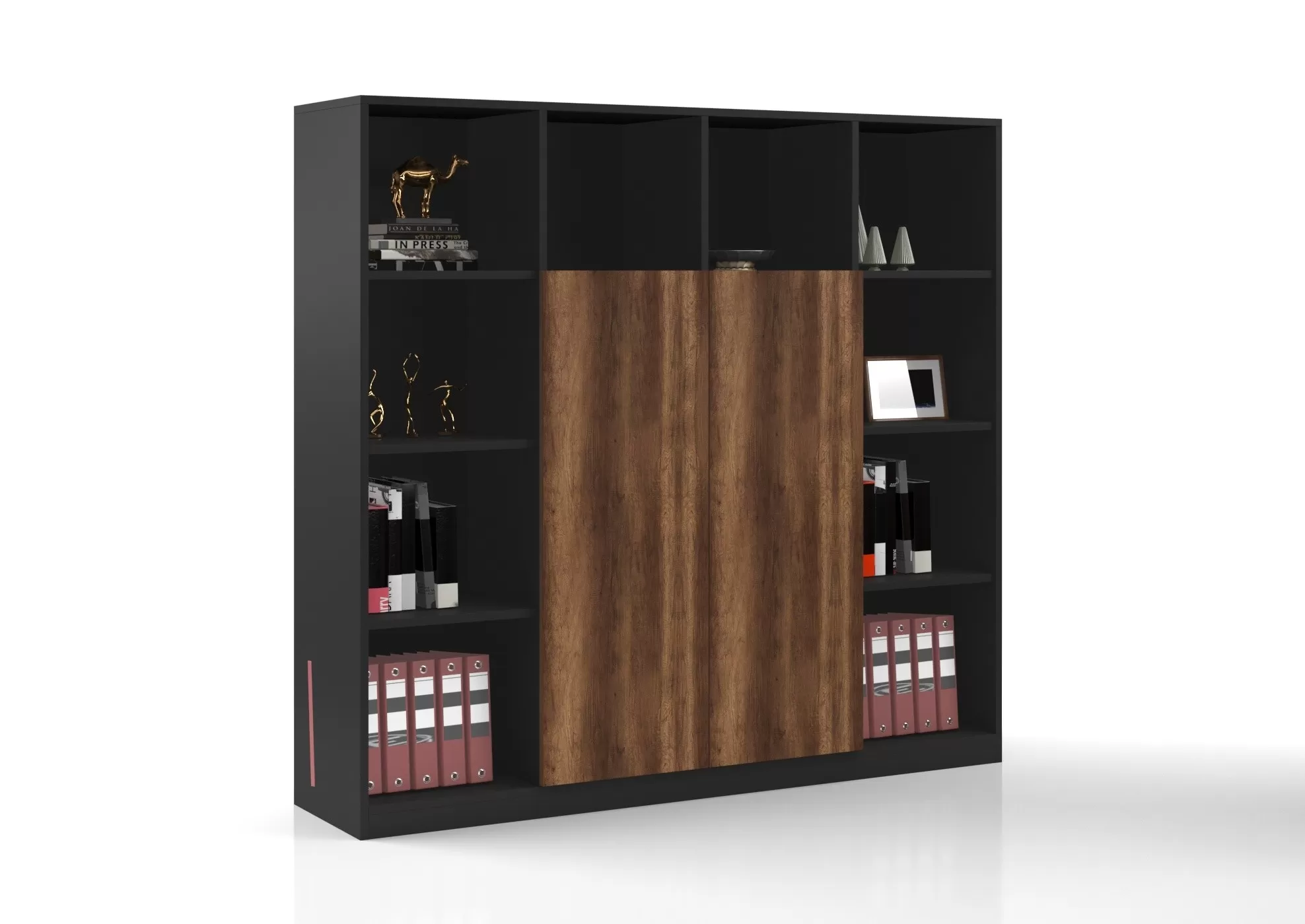 Şık siyah ve ahşap tasarımıyla EMİLO Dolap, ofisinize modern bir dokunuş katıyor!