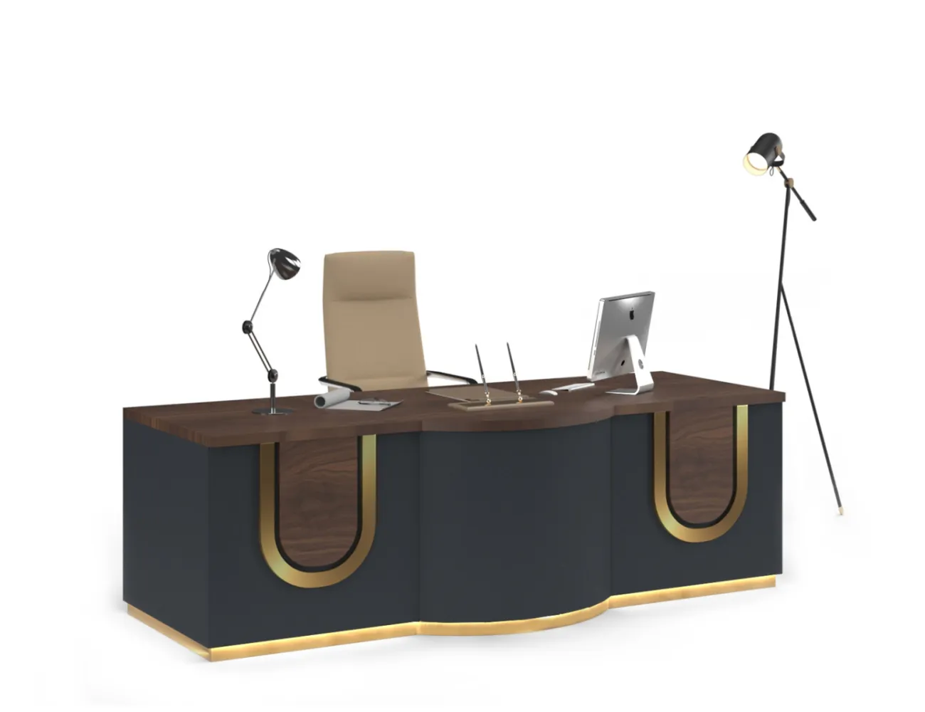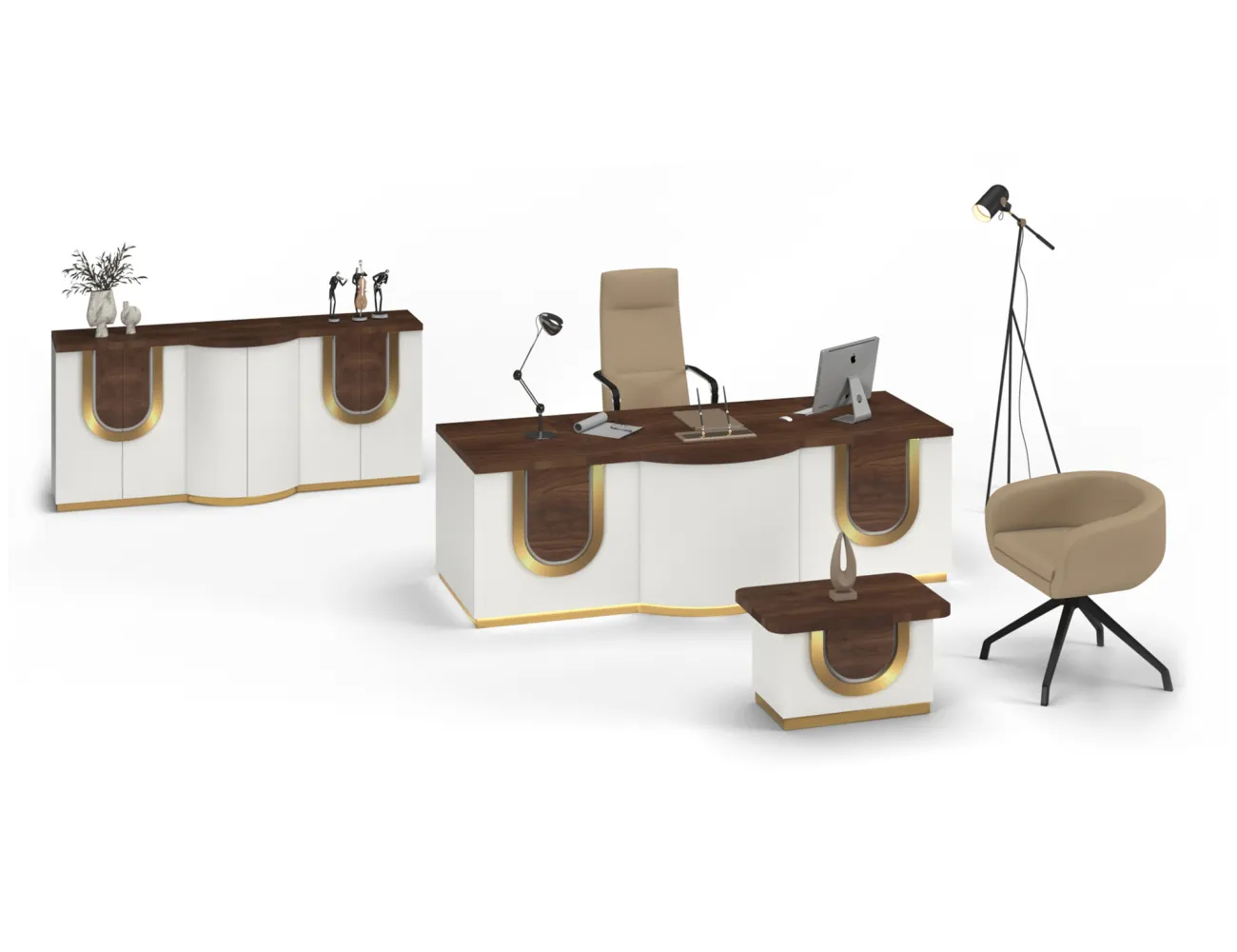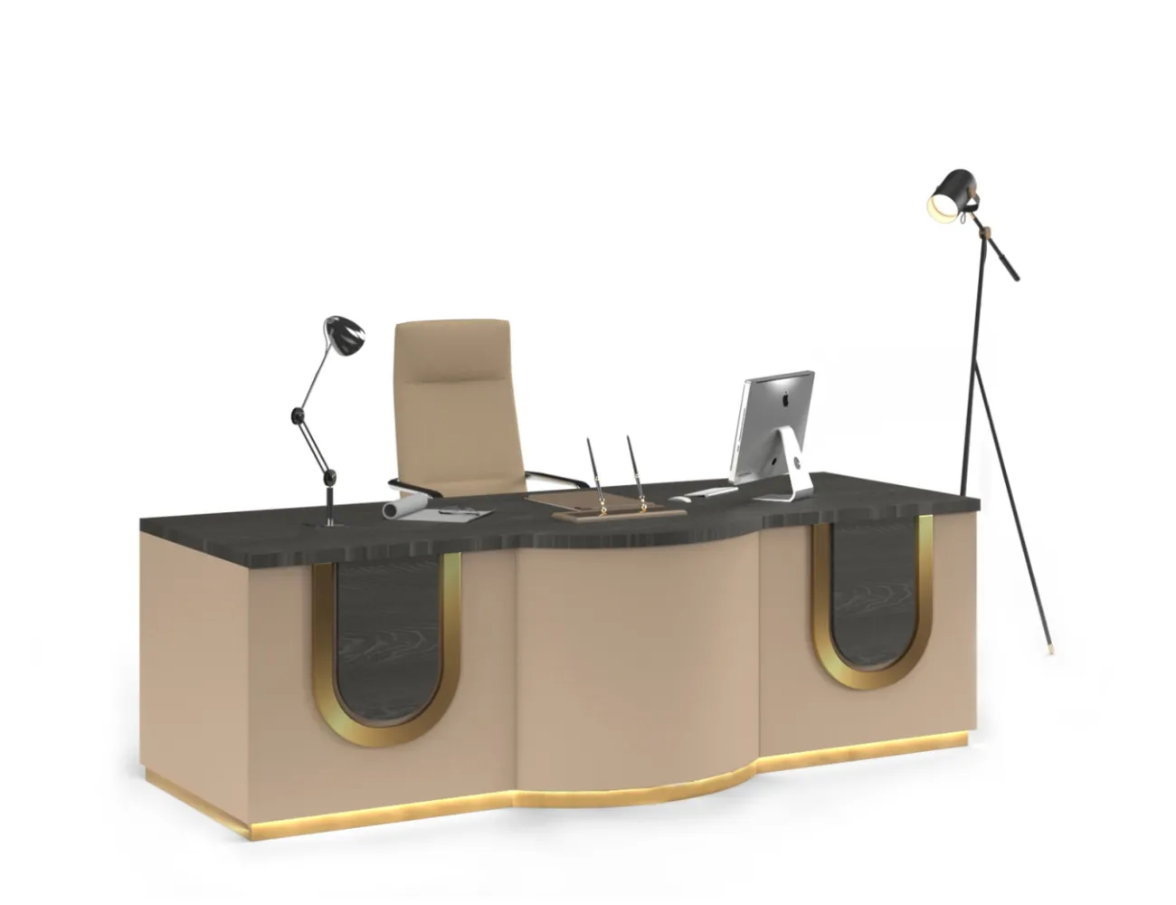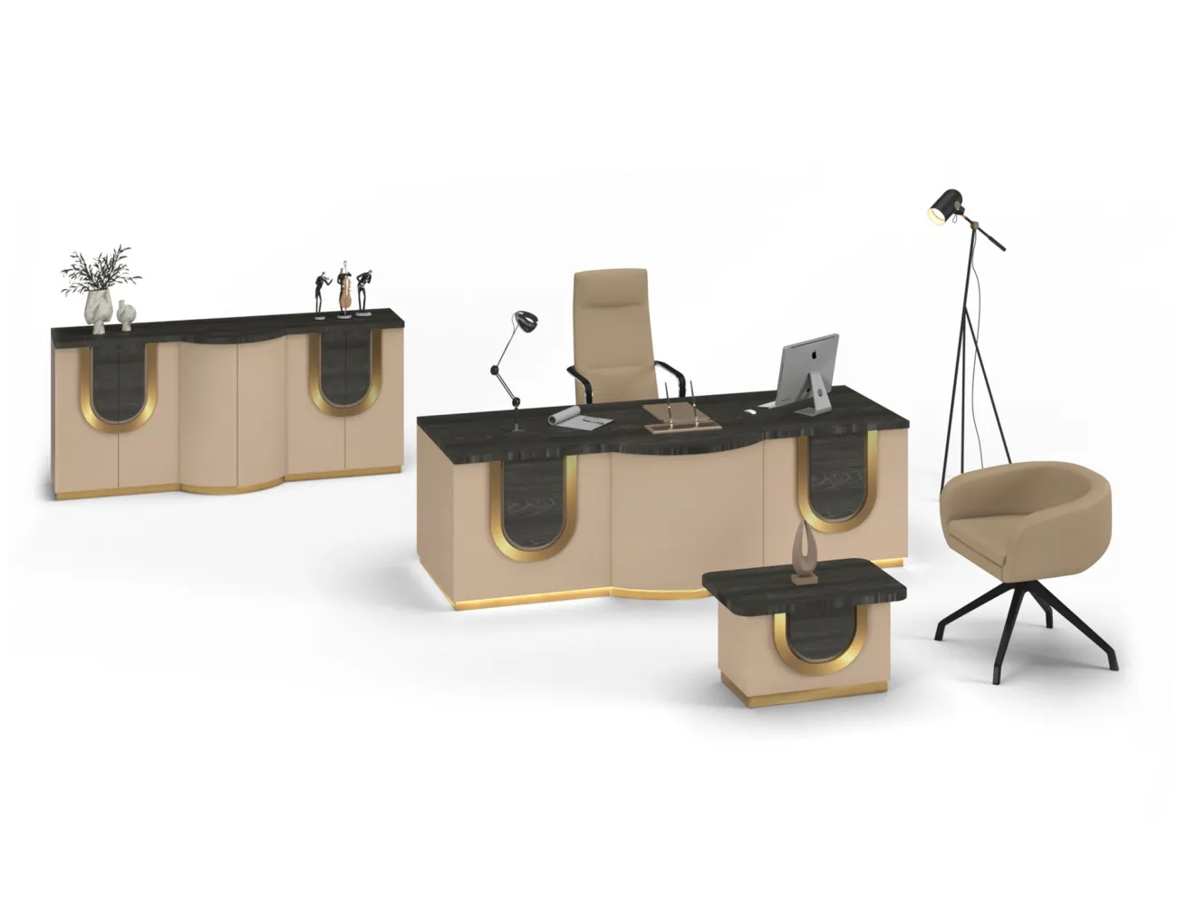 Zarif siyah ve altın detaylarla, Apollon Makam Masası ofisinize prestij katacak!