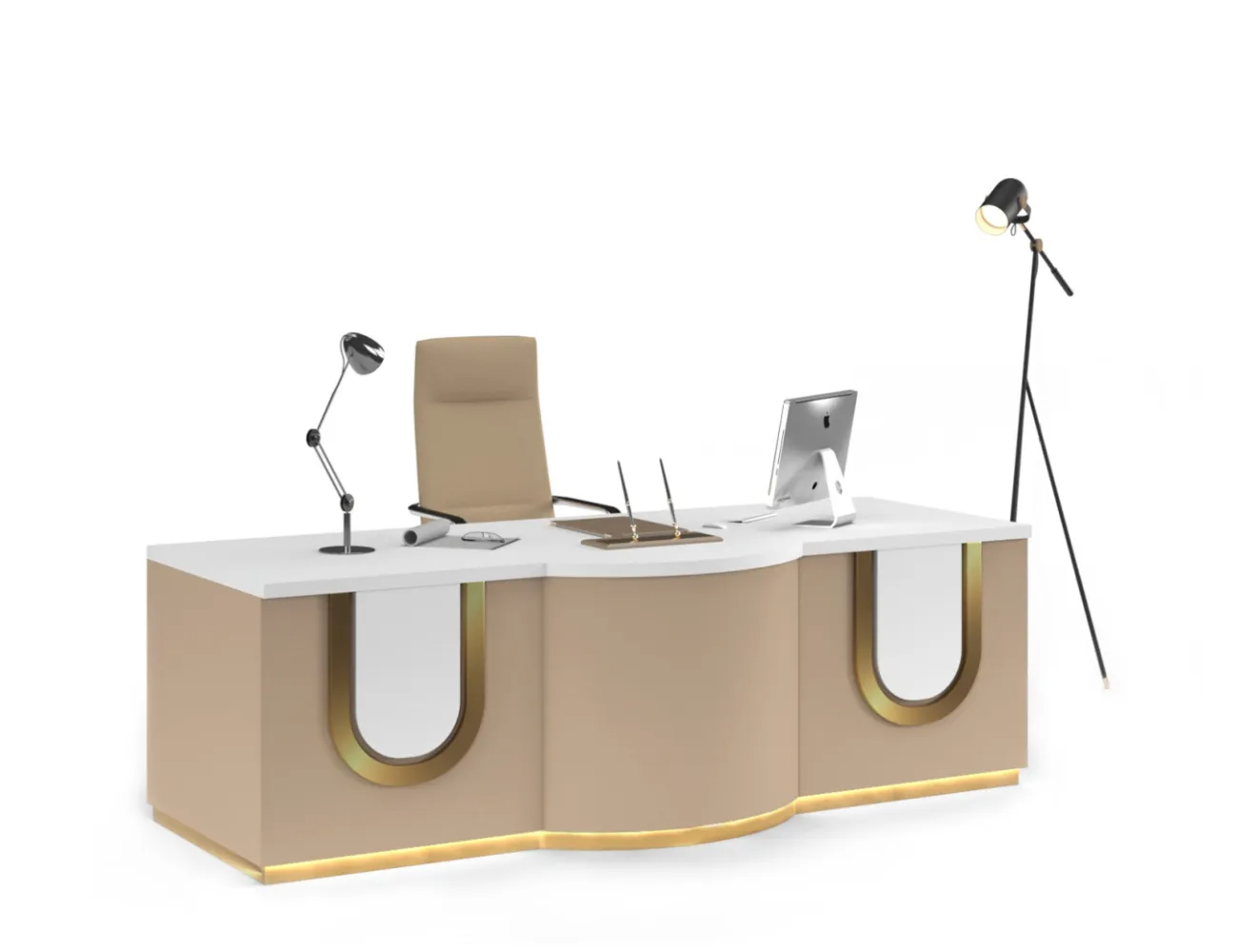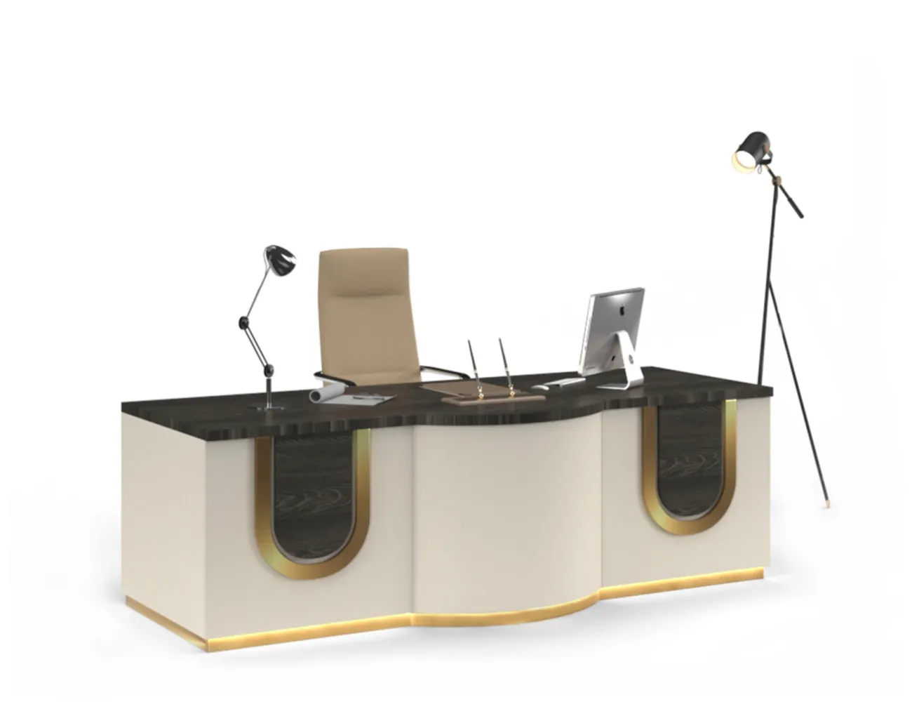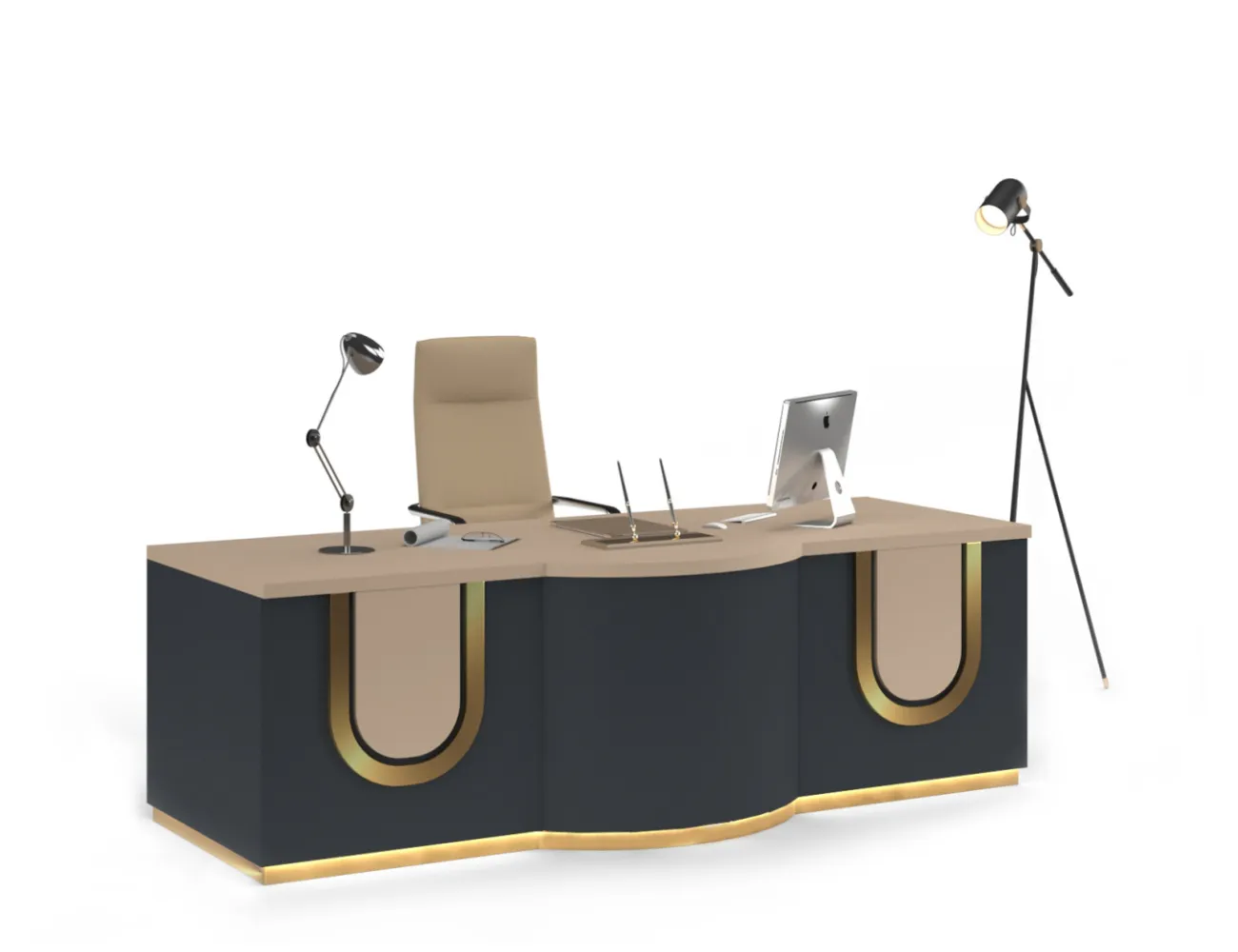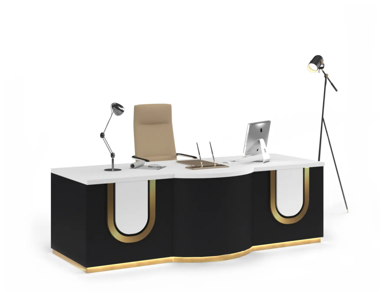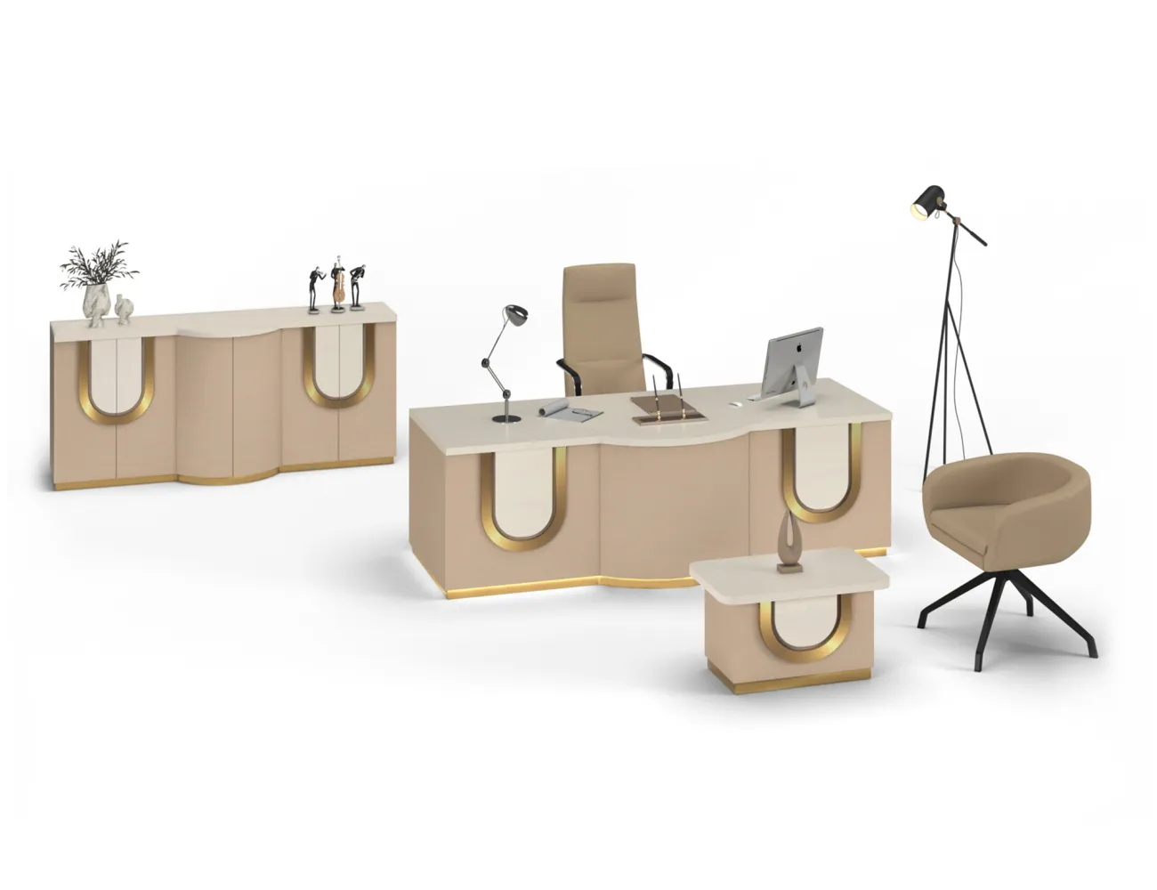 Zarif siyah ve altın detaylarla, Apollon Makam Masası ofisinize prestij katacak!