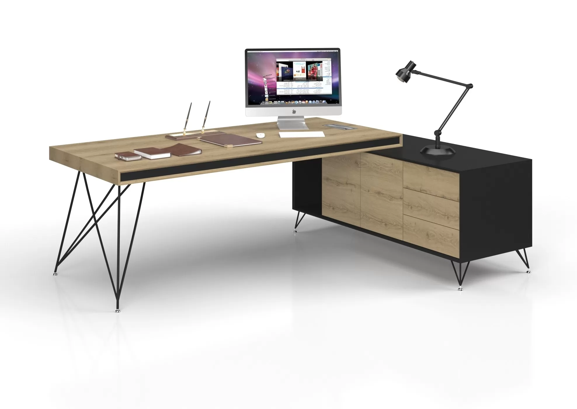 Endüstriyel siyah çizgilerle modern şıklık: Fabre Makam Masası, ofisinize prestij katar!