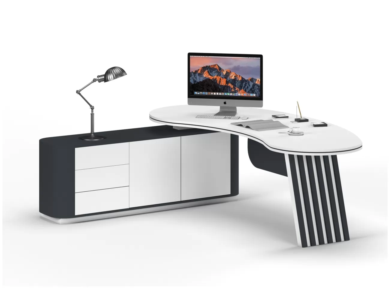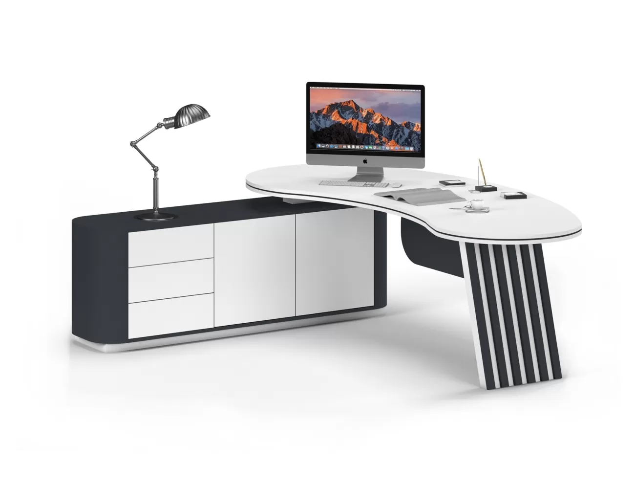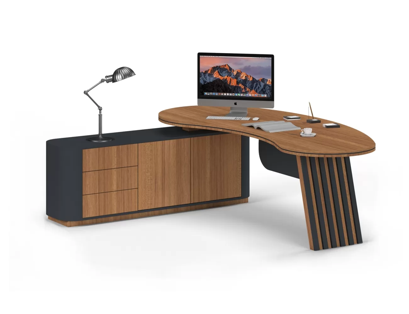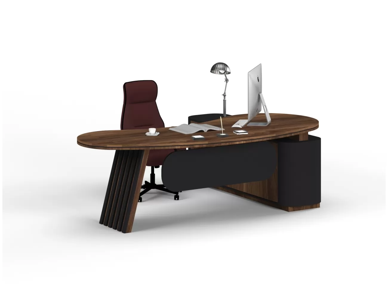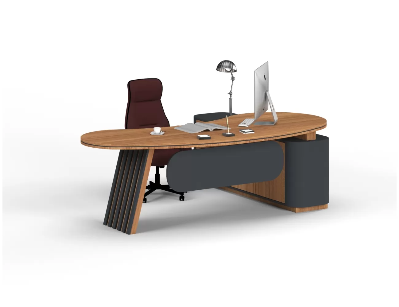 Zarif ahşap detaylar, şık krem yüzeylerle buluşuyor; Victor Makam Masası, ofisinize prestij katıyor!