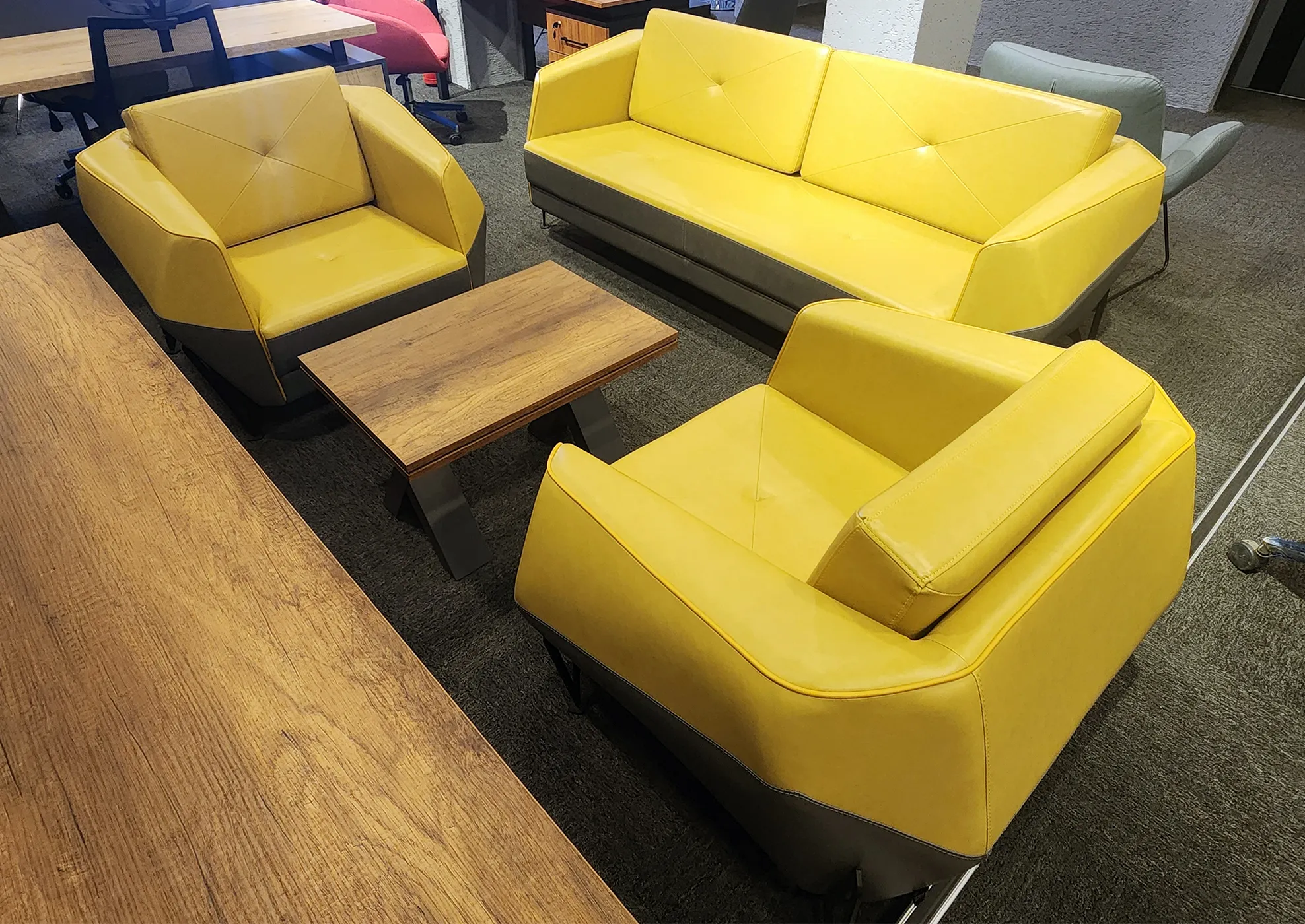 Canlı sarı rengi ve modern tasarımıyla BNTLY Kanepe Takımı, ofisinize enerjik bir hava katıyor!