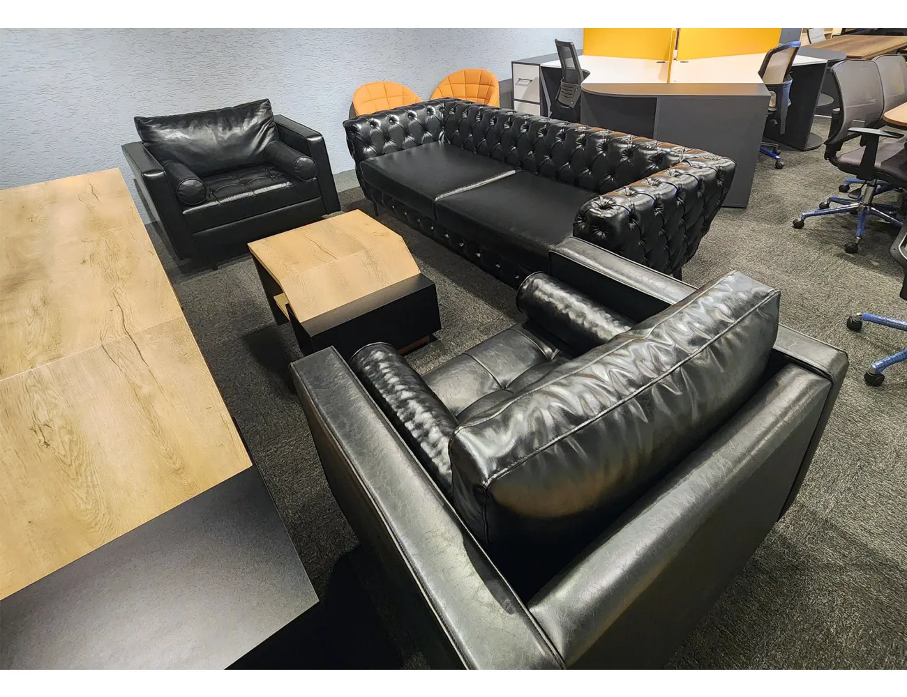 Şıklığın zirvesindeki siyah Chester kanepe takımı, ofisinize sofistike bir dokunuş katıyor!