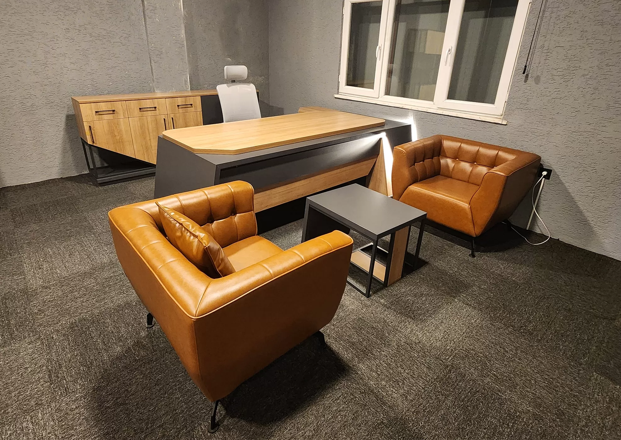 ZANNA Makam Masası Takımı ile şıklığı ofisinize taşıyın; modern tasarım ve zarif ahşap dokusuyla fark yaratın!